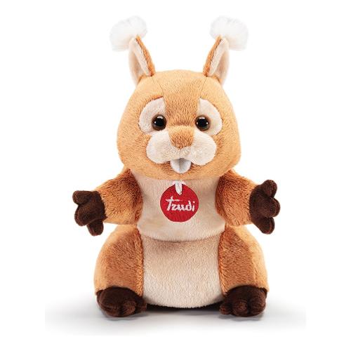 La marionetta scoiattolo trudi è una morbidissima puppet tridimensionale. Color biscotto, con la sua caratteristica coda soffice e un simpatico dentino