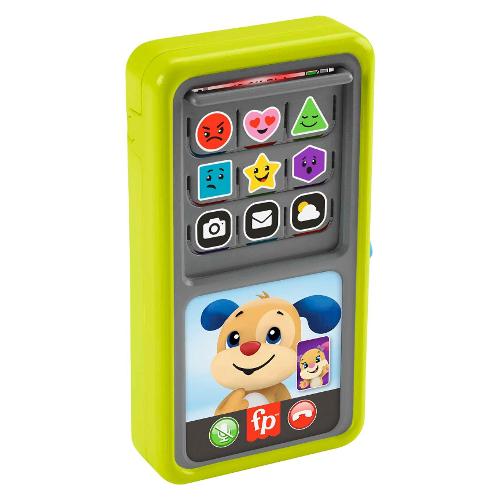 Scorri verso l'alto per scoprire i giochi didattici dello smartphone scorri e impara ridi e impara® fisher-price®. Questo telefono giocattolo interattivo somiglia proprio a un vero smartphone e include gli amici ridi e impara® più amati dai bambini: cagnolino e sorellina. Dispone inoltre di due modalità di apprendimento tramite 'app' e tasti numerici da premere per attivare luci, canzoni e suoni. Mentre i bambini premono, scorrono e cambiano le attività sul telefono, allenano le loro abilità motorie. Le canzoni e le frasi educative, invece, gli insegneranno i numeri e a contare, le forme, i colori e altro ancora. Usa il pulsante a forma di globo per selezionare la lingua: inglese, italiano, portoghese o spagnolo.