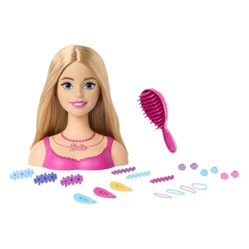 Dai sfogo alla creatività con questa Barbie Testa pettinabile! Ore e ore di divertimento ad acconciare capelli e creare infiniti look aspettano i bambini quando usano la loro immaginazione con i 20 accessori inclusi. La bambola Barbie ha capelli biondi e lisci e un look ispirato alla collana sul suo collo. Con i capelli raccolti sulla testa o intrecciati, con pettinature dai colori vivaci, allo stile non c'è limite. Aggiungi accessori come tre classici fermagli, tre fermagli a zigzag, tre fermagli con motivo di fiore, sei perline per capelli e quattro elastici. Alla fine del tuo capolavoro, con un colpo di spazzola ricomincia da capo per tantissime ore di divertimento! Le bambole Barbie Testa pettinabile stimolano la creatività e la sensibilità artistica di bambine e bambini, ecco perché sono regali fantastici!
