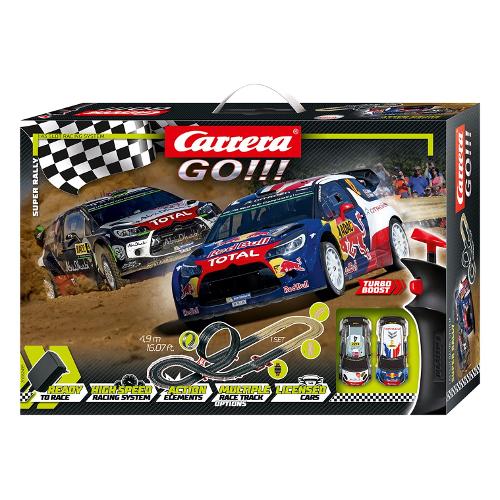 Con la citroën ds3 wrc, sébastian loeb ha vinto il rally di monte carlo al primo utilizzo con un vantaggio di 2 minuti e 45 secondi. Un risultato sbalorditivo. In seguito, loeb ha riconosciuto il talento del suo connazionale stéphane lefebvre e lo ha sostenuto da allora in poi. Lefebvre ha ottenuto il suo miglior risultato con l'auto da corsa in gran bretagna posizionandosi in ottava posizione. Mads østberg è passato alla citroën ds3 wrc nel 2014 e poi ha guidato per due anni per il team citroën total abu dhabi wrt. Affinché anche tu possa conoscere le gare di rally polverose e scivolose, questa pista carrera go!!! Di 4,9 metri con scala 1:43 ti dà la possibilità di provarla a casa tua. Le due vetture da corsa citroën ds3 wrc in scala 1:43 si differenziano solo per la verniciatura. Gli elementi della pista con rettilinei e strozzature in uno speciale design da rally offrono ulteriori elementi sofisticati sulla pista. Premendo il pulsante turbo sul controller, puoi davvero accelerare al massimo, specialmente nel looping. Oltre al circuito, alle due macchinine e ai due comandi manuali, il set contiene anche un trasformatore, un contagiri e gli accessori per la pista.