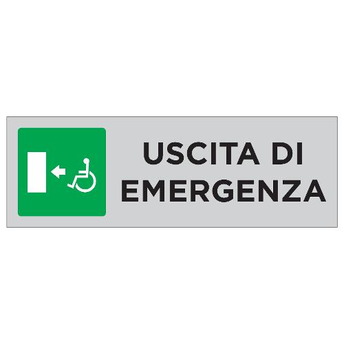Targhetta segnaletica orizzontale ( Uscita di emergenza a sx per disabili ) (15x5cm) 008587500