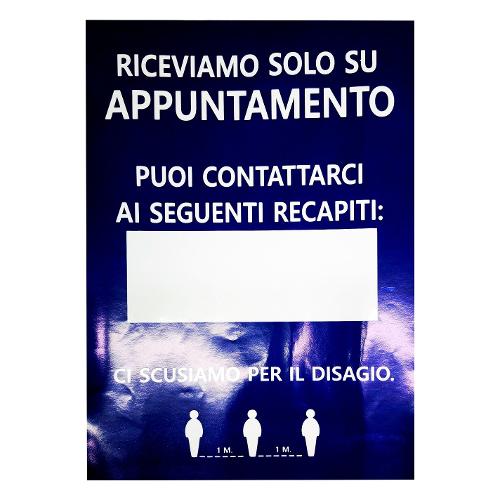 Cartello segnaletico ( Riceviamo solo su appuntamento ) (28,5x20cm) Blu