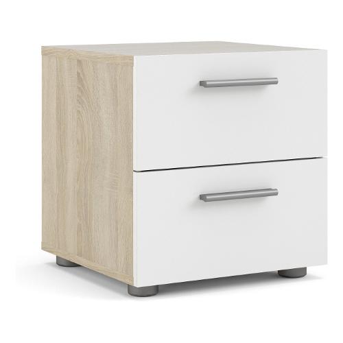 Tvilum PEPE Comodino 2 Cassetti Rovere e Bianco lucido Mobile KIT (40x40,3x42,3cm)