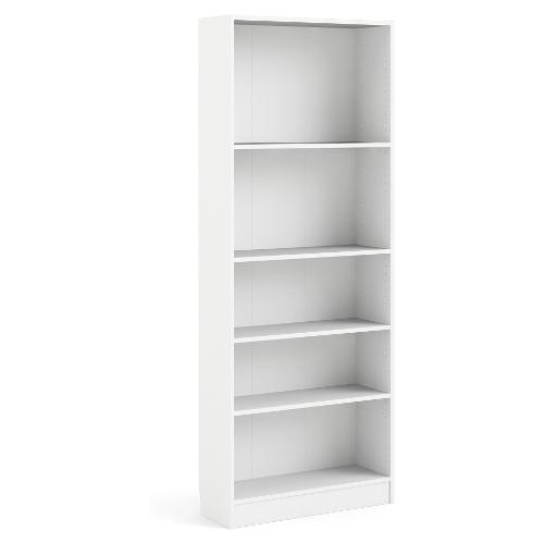 Libreria modulare a cinque vani con quattro mensole regolabili in altezza e schienale posteriore in tinta per arredare con stile l'ufficio o altri ambienti della casa quali il soggiorno