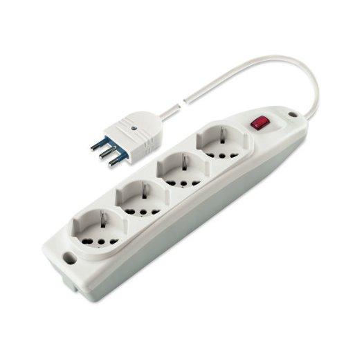 Prese multiple 250v - da tavolo o da parete, con cavo 3x1mm² e spina 16a 2p+t - presa quadrupla pluristandard 2p+t (standard italiano 10/16a e tedesco 16a con terra laterale) con interruttore luminoso, 1,5m cavo con spina 16a 2p+t, ce
