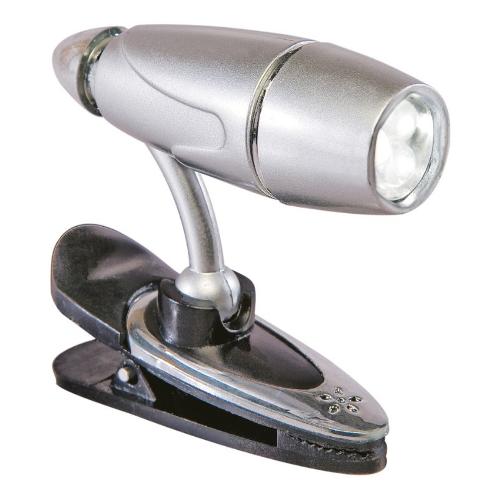 Luce led da lettura con aggancio a pinza e braccio regolabile a 360°. Dotata di 3 LED e interruttore ON / OFF. Funziona con 3 batterie AG13 (incluse nella confezione). Colore: argento. Emette una luminosa luce bianca. Grazie alla pratica clip universale e al braccio regolabile a 360° è adatta ad essere applicata ovunque: libri, riviste, giacche, cintura di sicurezza, occhiali, visiere ecc. Consumi bassissimi e lunga durata grazie alla tecnologia led