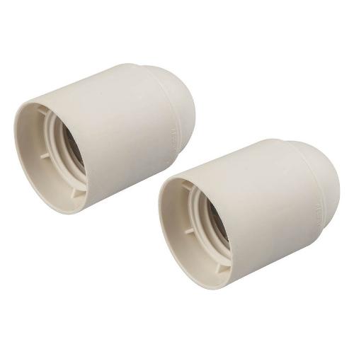 2 portalampada in materiale plastico 250 V, attacco E27, corpo liscio. Corrente nominale: 4 A. Massima temperatura d’esercizio: 180 °C. Morsetti a vite e contatti in ottone