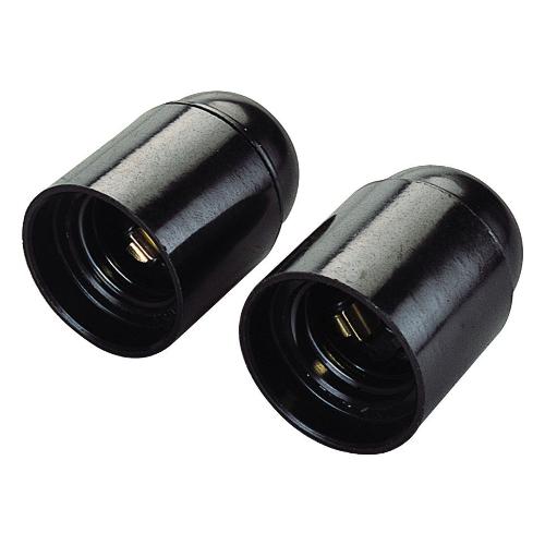 2 portalampada in materiale plastico 250 V, attacco E27, corpo liscio. Corrente nominale: 4 A. Massima temperatura d’esercizio: 180 °C. Morsetti a vite e contatti in ottone