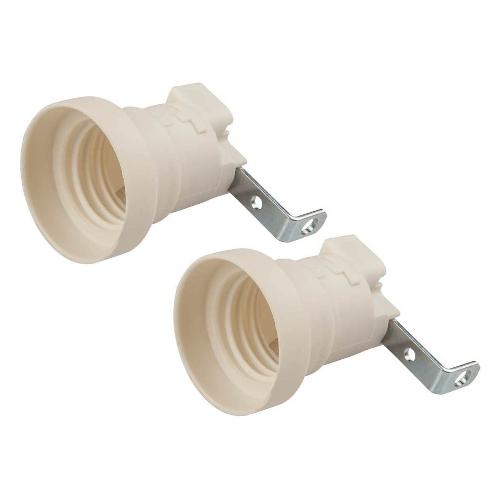 2 portalampada E27 dotati di fissaggio con staffa metallica munita di foro 5,2 mm. Per uso all’interno di plafoniere. Corrente nominale: 4 A. Massima temperatura d’esercizio: 210 °C. Morsetti a vite e contatti in ottone