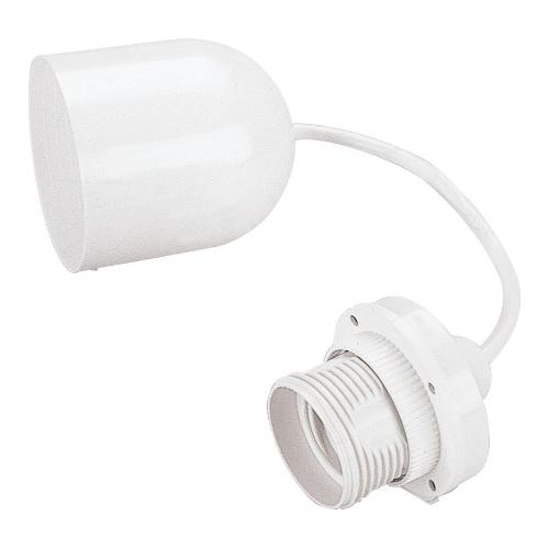 Punto luce da soffitto in materiale plastico con 80 cm di cavo H03VV-F sezione 2 x 0,75 mm² e portalampada E27 250 V. Completo di ghiera per il fissaggio al paralume. Isolato in classe II: non richiede il collegamento di messa a terra. Corrente nominale portalampada: 4 A. Potenza massima: 60 W