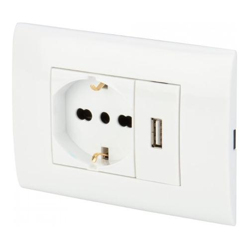 Placca elettrica (Presa Pluristd 2P+T 10/16A; Presa USB 2,1A 5V) Bianco PP6096X
