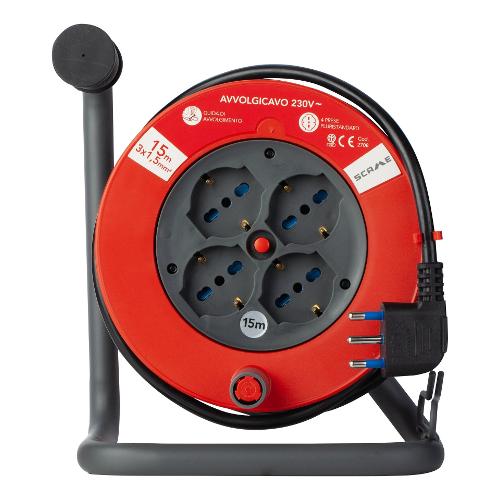 Scame Avvolgicavo elettrico (15m; H05VV-F 3x1,5 mmq) 4P e disgiuntore termico Zincato e Nero PP2708R