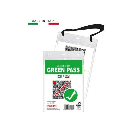 Porta greenpass in plastica trasparente, consente la lettura e protegge il documento .