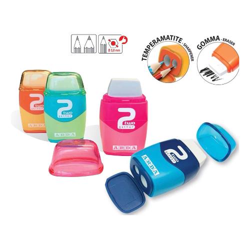 Arda Temperamatite doppio foro con serbatoio e gomma 2Gether Assortito TE811