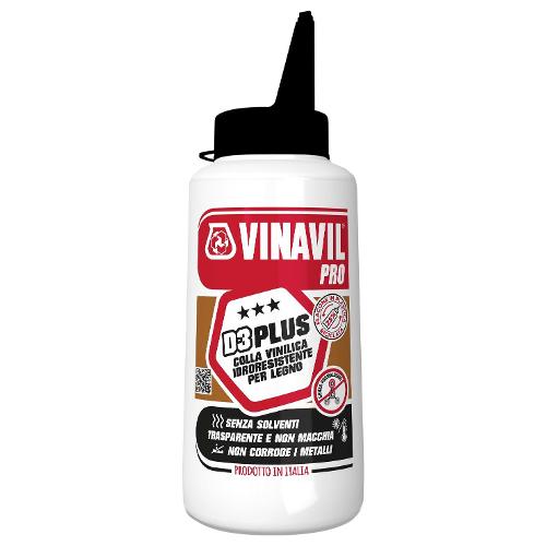 VINAVIL PRO D3 PLUS trova impiego come adesivo monocomponente per legno, impiallacciatura, compensati e laminati plastici su legno quando è richiesta la resistenza degli incollaggi all’acqua secondo la classe di durabilità D3 della norma EN 204. A differenza di altri adesivi vinilici D3, VINAVIL PRO D3 PLUS si contraddistingue in quanto: