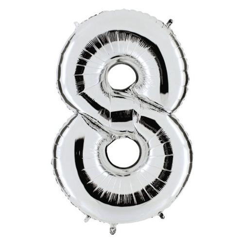 Palloncino Compleanno Numero 8 (1pz) Argento 31618