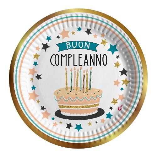 Ciao Set piatti piani monouso 8 pz (23cm) BUON COMPLEANNO 34749