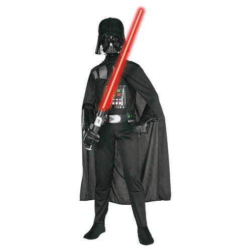 Passa al lato oscuro questo costume da bambino darth vader con maschera è l'ideale per diventare il protagonista di star wars e convincere tutti i tuoi amici ad accompagnarti nel "lato oscuro della forza" in tutte le tue feste. Questo costume include una tuta intera nera stampata con copristivali, una cintura stampata, un lungo mantello nero rimovibile con chiusura in velcro e una maschera in plastica stampata con lacci elastici in velcro sul retro. Questo costume è in poliestere al 100% tranne che per i dettagli.(Guanti E spada laser non inclusi)