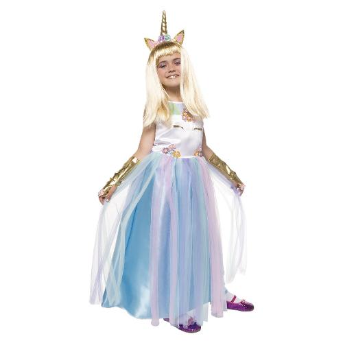 Principesse e regine, uno dei costumi preferiti dalle ragazze. Questo autentico costume da regina dell'unicorno è un prodotto originale rubie's. Disponibile anche il costume da principessa arcobaleno, il costume da principessa rose e il costume da principessa mignolo. Include abito bianco e blu, con gonna in tulle e dettagli stampati con unicorno. Include anche una fascia per unicorno e guanti per completare il costume.