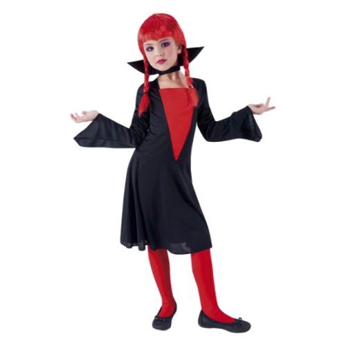 Il costume da vampirella per bambina, appartiene alla famiglia cheapyweens, i costumi più interessanti nel rapporto qualità prezzo. Costume composto da un vestito e un colletto