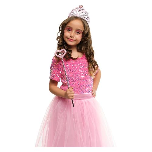 Principesse e regine, uno dei costumi preferiti dalle ragazze. Questo autentico costume da principessa rosa è un prodotto originale rubies. Include: tiara e bacchetta magica
