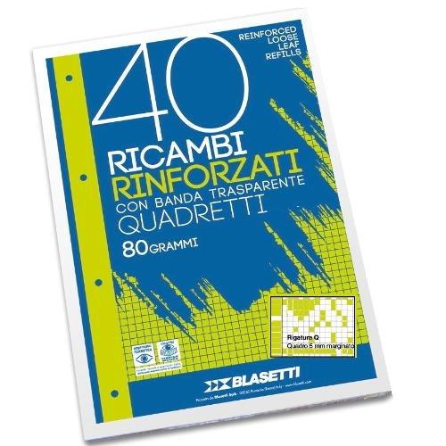 Blasetti Fogli ad anelli rinforzati A4 quadretti 5 mm con margine (Q) confezione da 40 fg 2338
