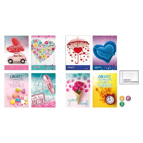 Quaderno quadretti 5 mm con margine (Q) Lovely Things A4 80 gr/mq Assortito 6915