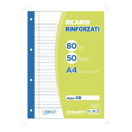 Blasetti Fogli ad anelli rinforzati A4 Riga B per 3° elementare confezione da 50 fg 7087