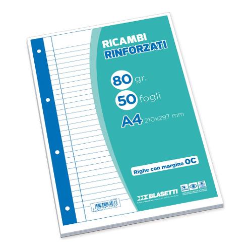Blasetti Fogli ad anelli rinforzati A4 1RC (1 rigo con margine) confezione da 50 fg 7093