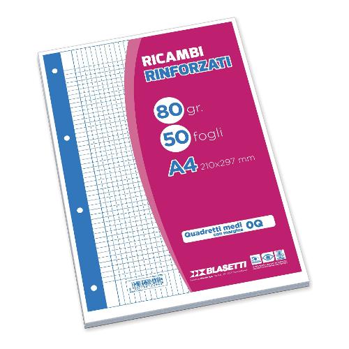 Blasetti Fogli ad anelli rinforzati A4 quadretti 5 mm con margine (Q) confezione da 50 fg 7094