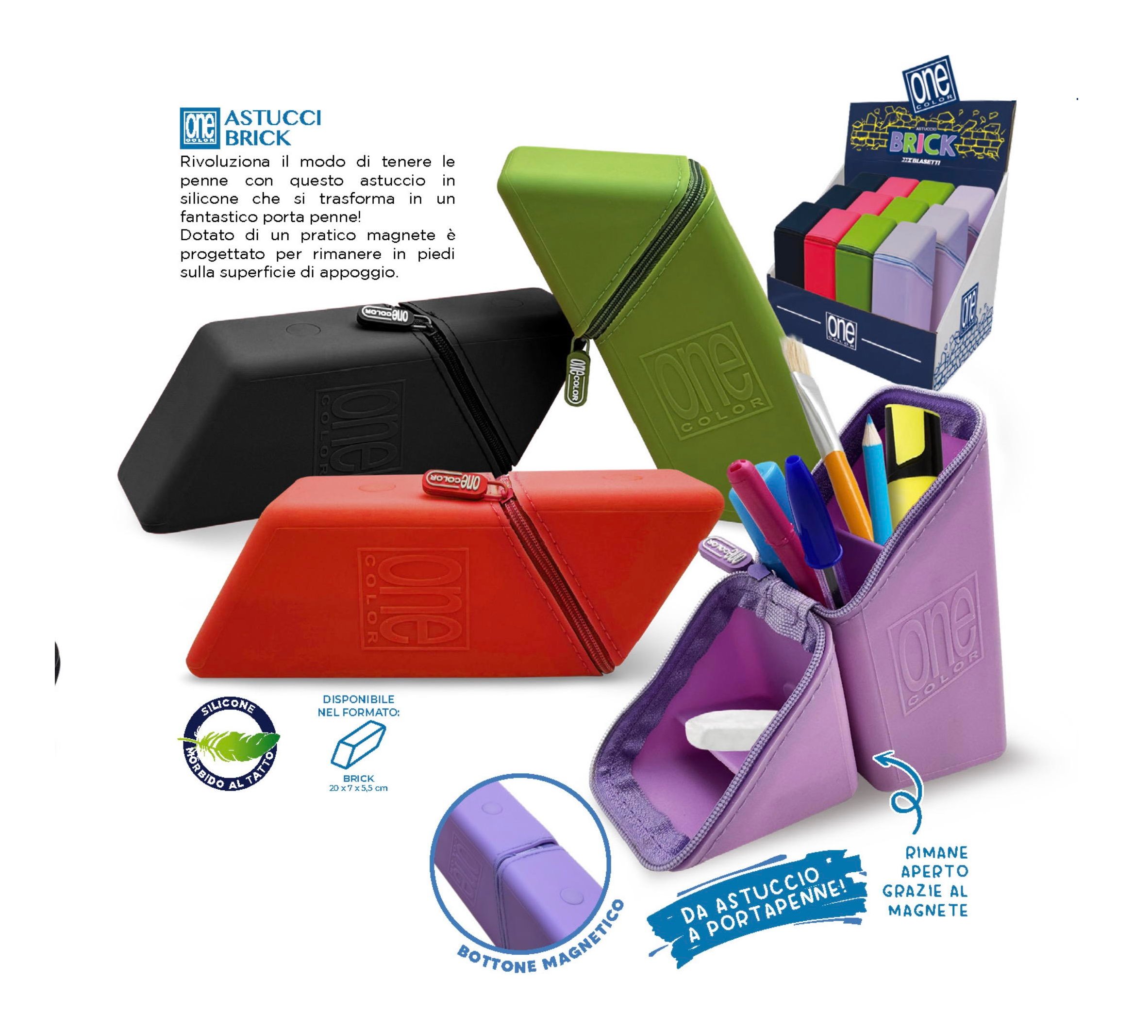 L’Astuccio One Color BRICK è l’accessorio perfetto per chi vuole unire design, funzionalità e praticità. Realizzato in silicone resistente e morbido, può essere utilizzato sia come astuccio che come comodo portapenne da scrivania, trasformandosi in un attimo grazie alla sua struttura intelligente.