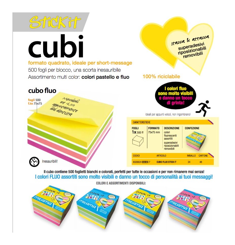 Notes adesivi 500 ff (7,5x7,5cm) STICK IT Multicolore