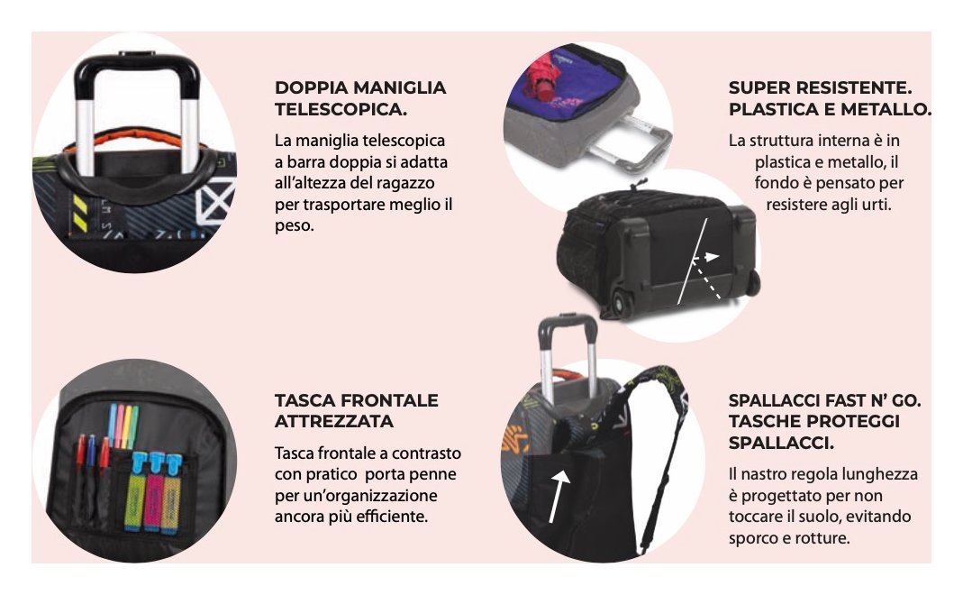 Da tirare o da indossare come uno zaino, perfetto per la