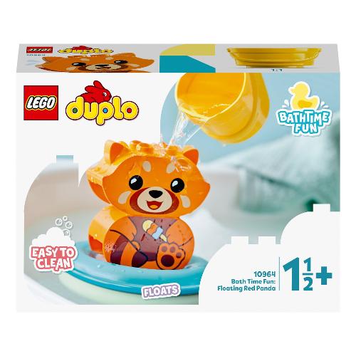 Il mio primo LEGO® DUPLO® Ora del bagnetto: Panda rosso galleggiante (10964) offre opzioni di gioco durante il bagnetto per favorire lo sviluppo dei bambini in età prescolare dai 18 mesi in su. Osserva come inizia il divertimento per lo sviluppo I bambini ameranno giocare con questo tenero panda nell’acqua, potranno lavarlo con il secchio, che si adatta perfettamente all’anello, mentre il panda si concede una nuotatina. Un gancio arrotondato permette di collegare l’anello galleggiante agli anelli dei set (venduti separatamente) Ora del bagnetto: Treno degli animali galleggiante 10965 e/o Ora del bagnetto: Isola degli animali galleggiante 10966. Inoltre, l’anello si apre per facilitare il risciacquo e garantirne l’igiene, bagnetto dopo bagnetto Apprendimento giocoso per i più piccoli I giocattoli LEGO DUPLO consentono ai genitori di condividere le preziose tappe evolutive dei propri bambini attraverso il divertimento, l'auto-espressione e l'esplorazione gioiosa.