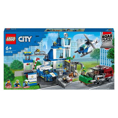 Questo giocattolo della Stazione di Polizia LEGO® City (60316) a 3 piani è ricco di dettagli d'ispirazione, tra cui una prigione con funzione di evasione, un cortile per l'ora d'aria del ladro e un'area di addestramento per il cane. Il set include anche un'auto della polizia, un elicottero e un camion della spazzatura personalizzato per il ladro, oltre a una piattaforma stradale da collegare ad altri set. Basta aggiungere 5 minifigure, tra cui 3 personaggi della serie televisiva LEGO City Adventures e che il gioco abbia inizio. Costruzioni divertenti per la fascia di età 6+ Questo set di costruzione LEGO include una guida passo passo stampata e istruzioni di montaggio digitali interattive. Disponibile nell'app gratuita LEGO Building Instructions per smartphone e tablet, la guida digitale contiene incredibili strumenti di zoom e rotazione intuitivi che consentono di visualizzare ciascun modello da qualsiasi angolazione durante la costruzione. Il mondo creativo di LEGO City I playset LEGO City offrono una piacevole esperienza di costruzione e di gioco con edifici ricchi di caratteristiche, veicoli realistici e personaggi divertenti che ispirano il gioco aperto e l'immaginazione.