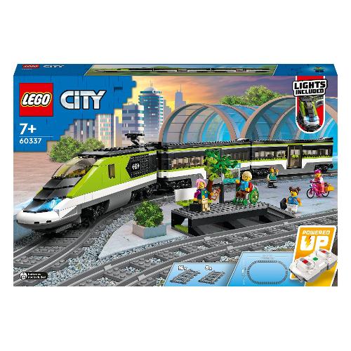 Il set lego® city treno passeggeri espresso (60337) include una locomotiva ad alta velocità telecomandata con fari dimmerabili funzionanti e tecnologia lego powered up, un vagone ristorante, una carrozza per i passeggeri, una banchina della stazione, 24 pezzi di binari e 6 minifigure per infinite ore di gioco a tema ferroviario.