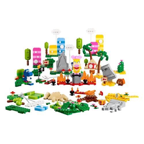 I giovani costruttori possono aggiungere ulteriori dettagli e profondità ai loro livelli lego® super mario™ con il set della toolbox creativa (71418). Il set contiene alberi, fiori, montagne, funghi, piramidi, una bandiera di punto intermedio, ecc. per ricreare il look dei livelli erbosi, desertici e lavici di super mario™. Una fantastica idea regalo per i bambini dai 6 anni in su che già possiedono uno Starter Pack (71360, 71387 o 71403, necessari per il gioco interattivo), include anche 3 frutti, una confezione regalo e un Super Fungo con action tag e 3 personaggi LEGO Super Mario: Wendy, Yoshi Blu e Goomba.