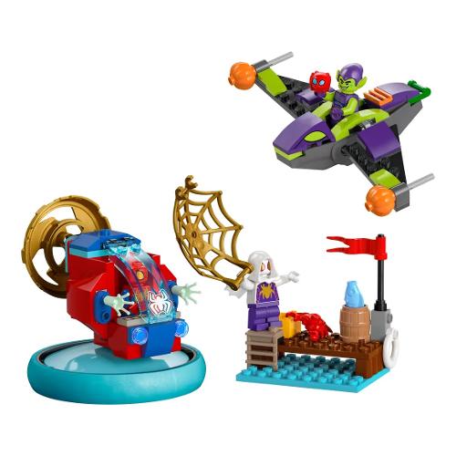 Questo set con veicolo giocattolo Spidey and his Amazing Friends Disney+ include: una minifigure di Spider-man e il suo hover spinner con elica rotante e cabina di pilotaggio sollevabile; una minifigure del Goblin con il suo aliante e proiettili di zucca; una minifigure di Ghost-Spider con il suo grande elemento ragnatela dorato. C’è anche l’amico robot di Spider-man, Trace-E, accessori marini e un simpatico granchio. Il set contiene lo Starter Brick della cabina di pilotaggio per aiutare a iniziare la costruzione e istruzioni intuitive sotto forma di una colorata guida illustrata.