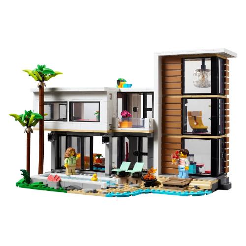 Con il divertente set di gioco della Casa moderna (31153), i bambini e le bambine dai 9 anni in su possono esplorare 3 diverse case giocattolo LEGO®. La lussuosa casa sulla spiaggia a 2 piani si erge all’ombra di 2 palme e dispone di cucina, soggiorno, sala lettura, camera da letto, bagno con doccia, balcone e arredi moderni tra cui una poltrona e un lampadario. C’è anche una piscina dove i bambini possono inventare storie divertenti.