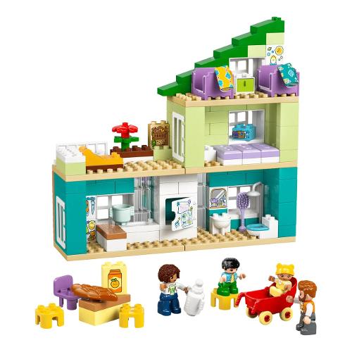 I bambini dai 2 anni in su possono divertirsi con il gioco di finzione esplorando le routine familiari con questo kit di costruzione Casa familiare moderna 3 in 1 con personaggi (10470). Con 4 personaggi - 2 genitori, un bebè e un bambino - questogiocattolo interattivo consente ai bambini di divertirsi con attività di apprendimento sociale ed emotivo mentre giocano con la famiglia nella loro abitazione. Questo giocattolo versatile consente di sviluppare le capacità motorie complesse e offre tan te possibilità creative mentre i bambini e le bambine costruiscono 3 modelli utilizzando gli stessi mattoncini LEGO® DUPLO®. Possono configurarlo come un appartamento su un piano o come una “casa delle bambole” a 3 o 5 piani con un giardino sul tetto e accessori come un lettino e un hotel per gli insetti. Questo giocattolo per il gioco di ruolo per i bambini include tanti accessori per casa delle bambole che i bambini riconosceranno dalle loro abitazioni, come un frigorifero, un WC e un passeggino. Queste funzionalità stimoleranno ore di narrazione per i bambini, i quali svilupperanno creatività, impareranno a conoscere le routine ed esploreranno i diversi ruoli in una famiglia.