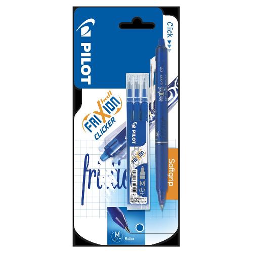 Penna cancellabile sfera scatto con ricambi tratto medio - 0,7 mm Blu gel con 3 refill FRIXION CLICKER 3802159