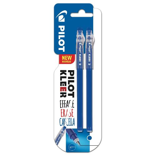 Set penne cancellabili sfera cappuccio 2 pz tratto Fine - 0,7 mm Blu ad olio KLEER 3800251