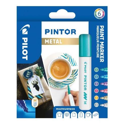 Set pennarelli marcatori 6 pz tratto medio Colori metal assortiti PINTOR 002335