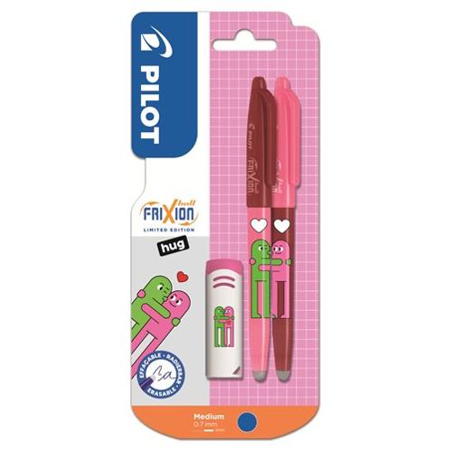 Set penne cancellabili roller cappuccio 2 pz Cuore con gomma tratto Medio - 0,7 mm Blu gel FRIXION BALL FRIENDS 800361