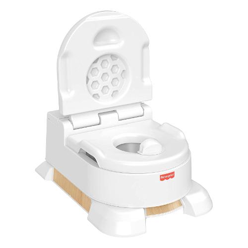 Il Vasino Design 4 in 1 di Fisher-Price® sembra proprio il wc degli adulti, ma rimpicciolito. La seduta del vasino consente al tuo piccolo di imparare a usarlo con impugnature facili da afferrare che lo aiutano a sentirsi sicuro e un recipiente rimovibile e facile da pulire. Poi, quando il bimbo passa al gabinetto grande, il riduttore rimovibile del vasino aggiunge ulteriore sostegno e il vasino si può trasformare in uno sgabello a gradini da tenere vicino al lavandino. I pulsanti che si illuminano sul retro attivano suoni realistici dello scarico e due timer di attività preprogrammati con musica che incoraggiano abitudini sane, come spazzolare i denti e lavare le mani. Funziona con 2 batterie AA non incluse.