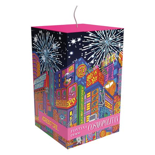Fontana cosmopolitan ce da usare esclusivamente all’aperto in un luogo appropriato e senza ostacoli, lontano da persone e beni. Rimuovere il coprimiccia arancione. Posizionare la fontana verticalmente su una superficie stabile e piana. Posizionarsi di lato, accendere la miccia alla sua estremita’ non portando mai il viso sopra l’artificio ed allontanarsi immediatamente almeno di 8 metri.