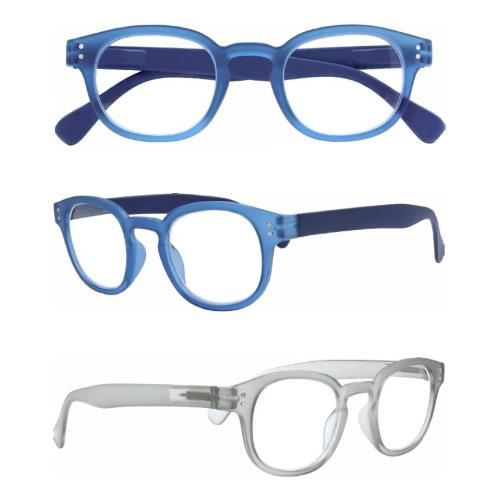 Occhiali da lettura per presbiopia semplice perfetti per leggere da vicino e per un uso quotidiano. Stanghette flessibili con apertura a molla; Lenti asferiche in materiale organico; Centri focali allineati; Distanza interpupillare di 62 mm. Dispositivo Medico Conformi al Regolamento (UE) 2017/745 e alla norma EN 14139:2010.