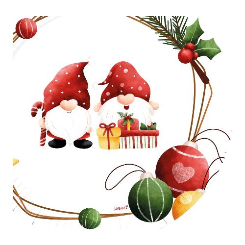 Set tovaglioli monouso 2 Veli Gnometti Christmas 40 pz (25x25cm) SMART Bianco 77765