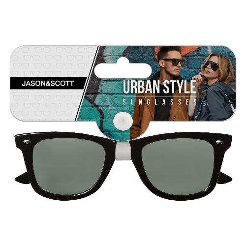 Occhiali da sole per adulti per la protezione dai raggi u.v. realizzati nel pieno rispetto del regolamento (UE) 2016/425 e della norma ISO12312-1:2013/A1:2015. Marcatura CE. Montatura nero lucido / Lenti verdi