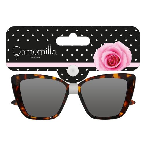 Occhiali da sole per adulti per la protezione dai raggi u.v. realizzati nel pieno rispetto del regolamento (UE) 2016/425 e della norma ISO12312-1:2013/A1:2015. Marcatura CE. Montatura tartaruga lucido trasparente con sfumature arancio